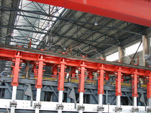 電解槽母線轉(zhuǎn)接框架是大型預焙陽極鋁電解槽的一個重要組成部分。在高溫、多塵、強磁場的條件下工作,專門用于電解槽的陽極母線升降。該設備在制造過程中,要求嚴格采用先進工藝控制零部件的加工質(zhì)量,受力的關鍵部件等要求采用特殊材。